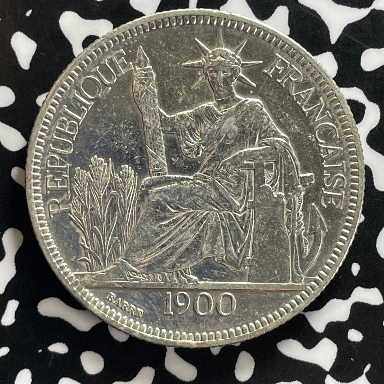 1900-A French Indo-China 1 Piastre Lot#JM0270 Large Silver! Nice Detail, Cleaned
