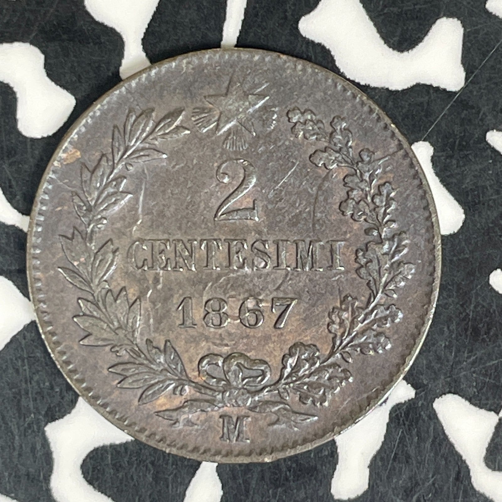 1867-M Italy 2 Centesimi Lot#C6303 Nice!
