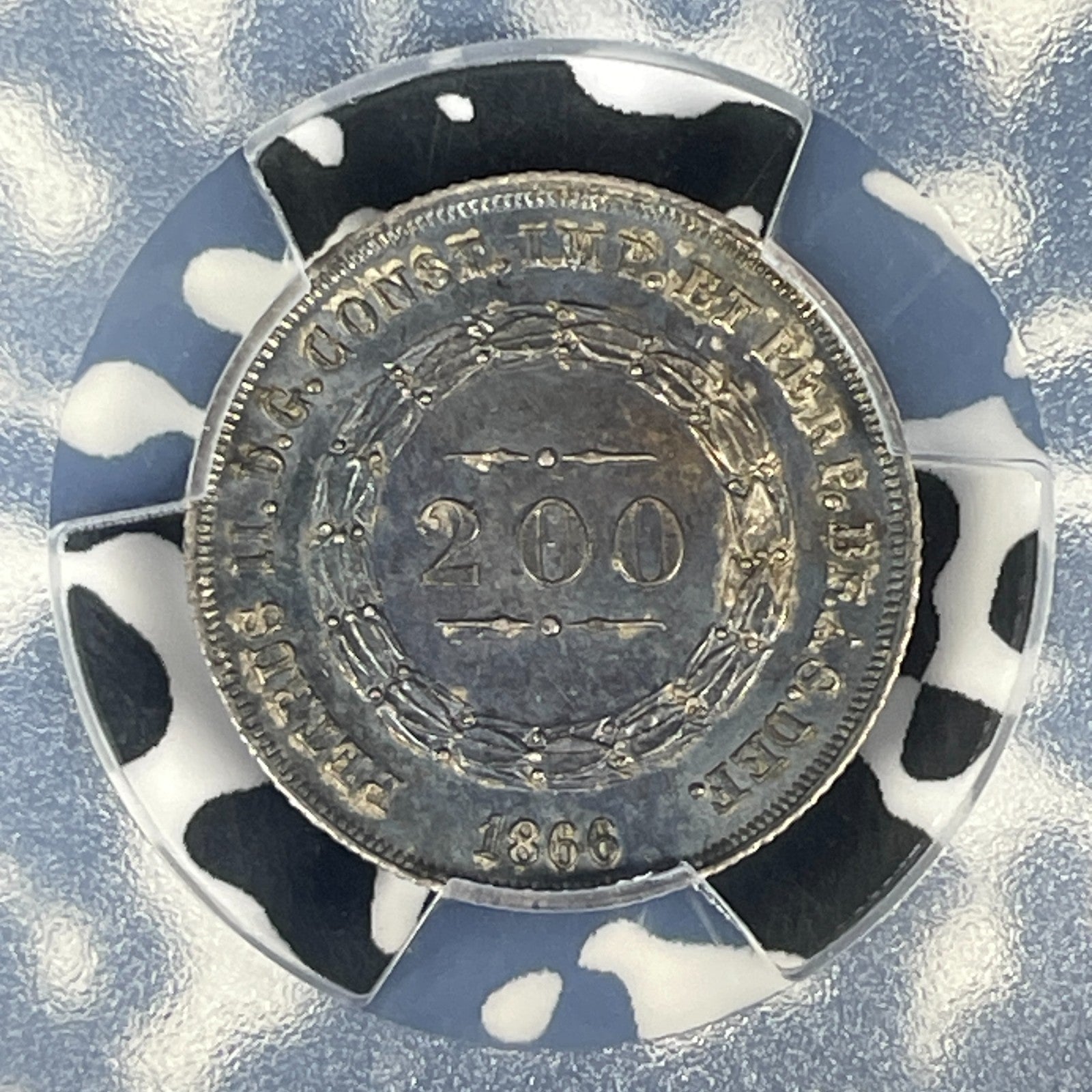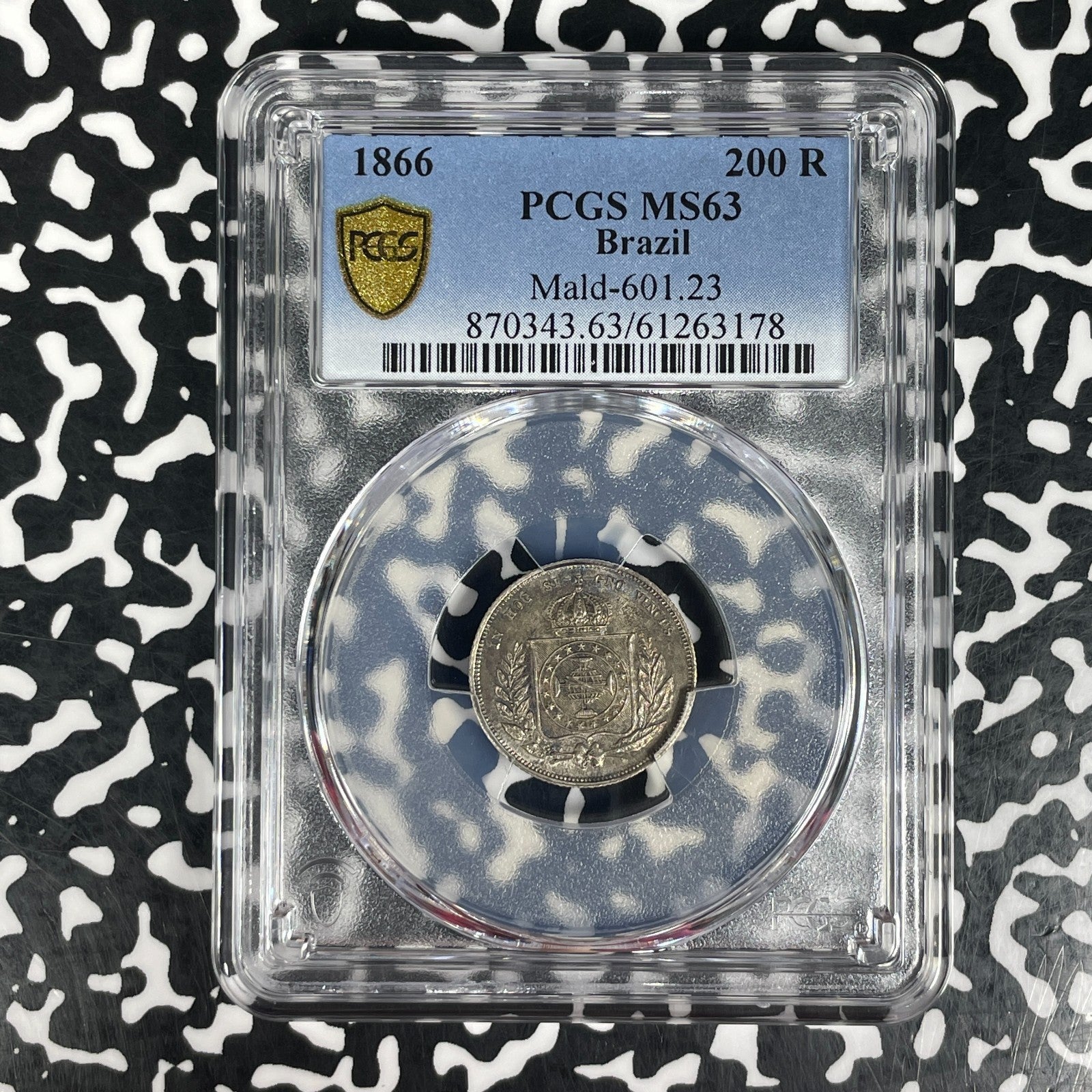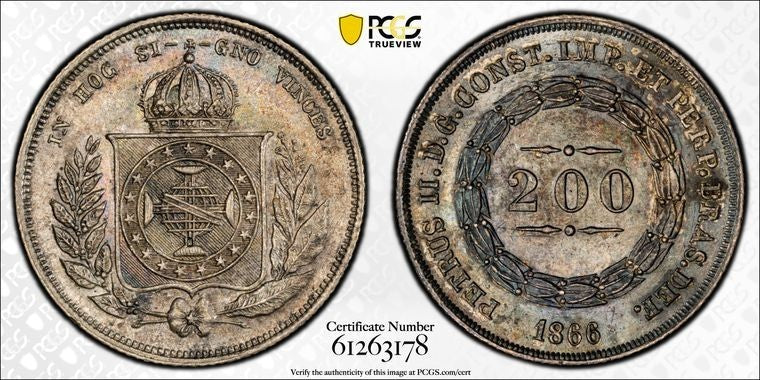 1866 Brazil 200 Reis PCGS MS63 Lot#G1259 Silver! Choice UNC! Mald#601.23