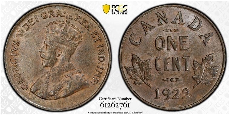 1922 Canada Small Cent PCGS AU55 Lot#G1168 Key Date!