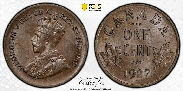 1927 Canada Small Cent PCGS MS63BN Lot#G1169 Choice UNC!