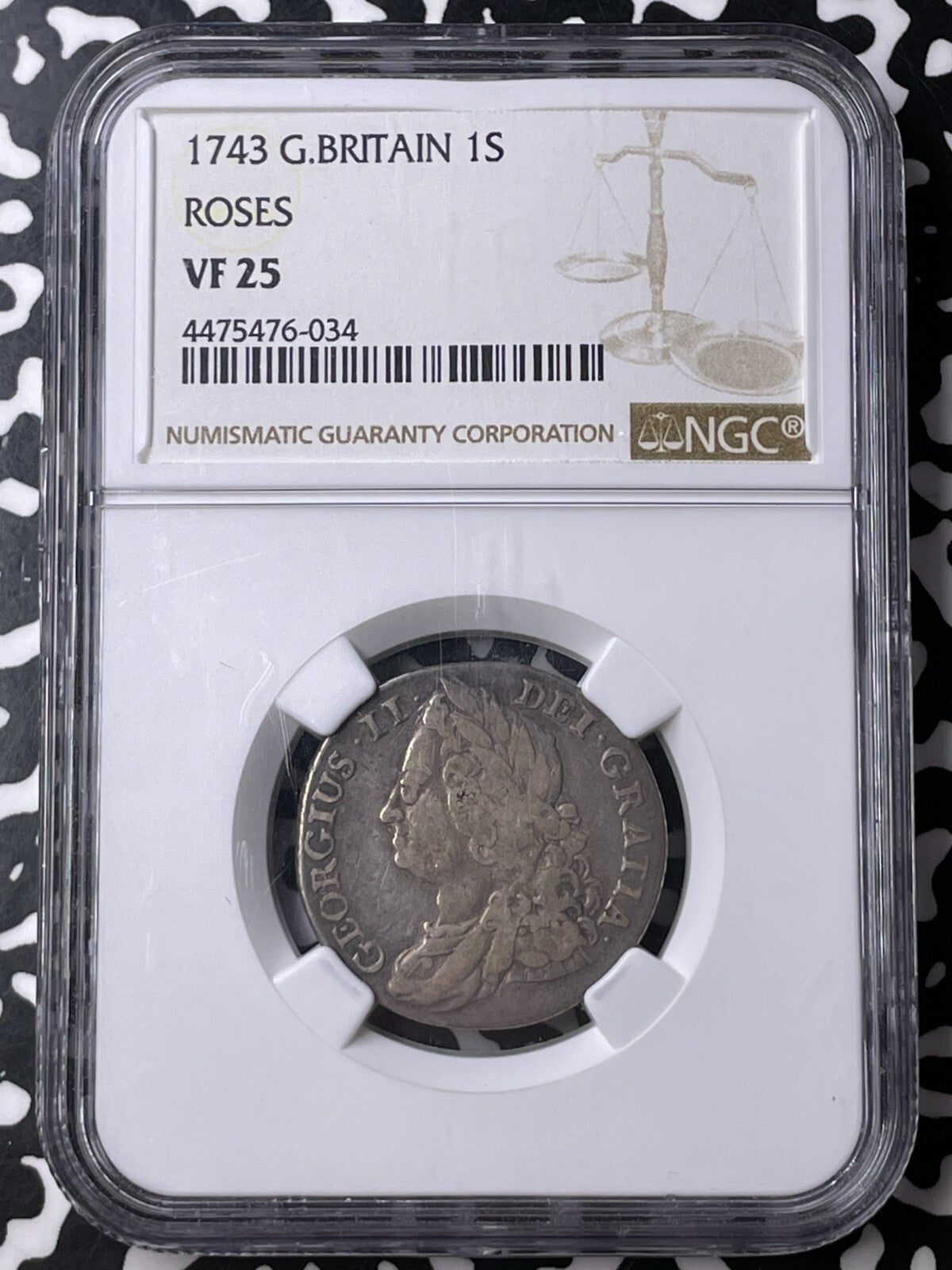 1743 G.B. George II 1 Shilling NGC VF25 Lot#MK75 Silver! With Roses