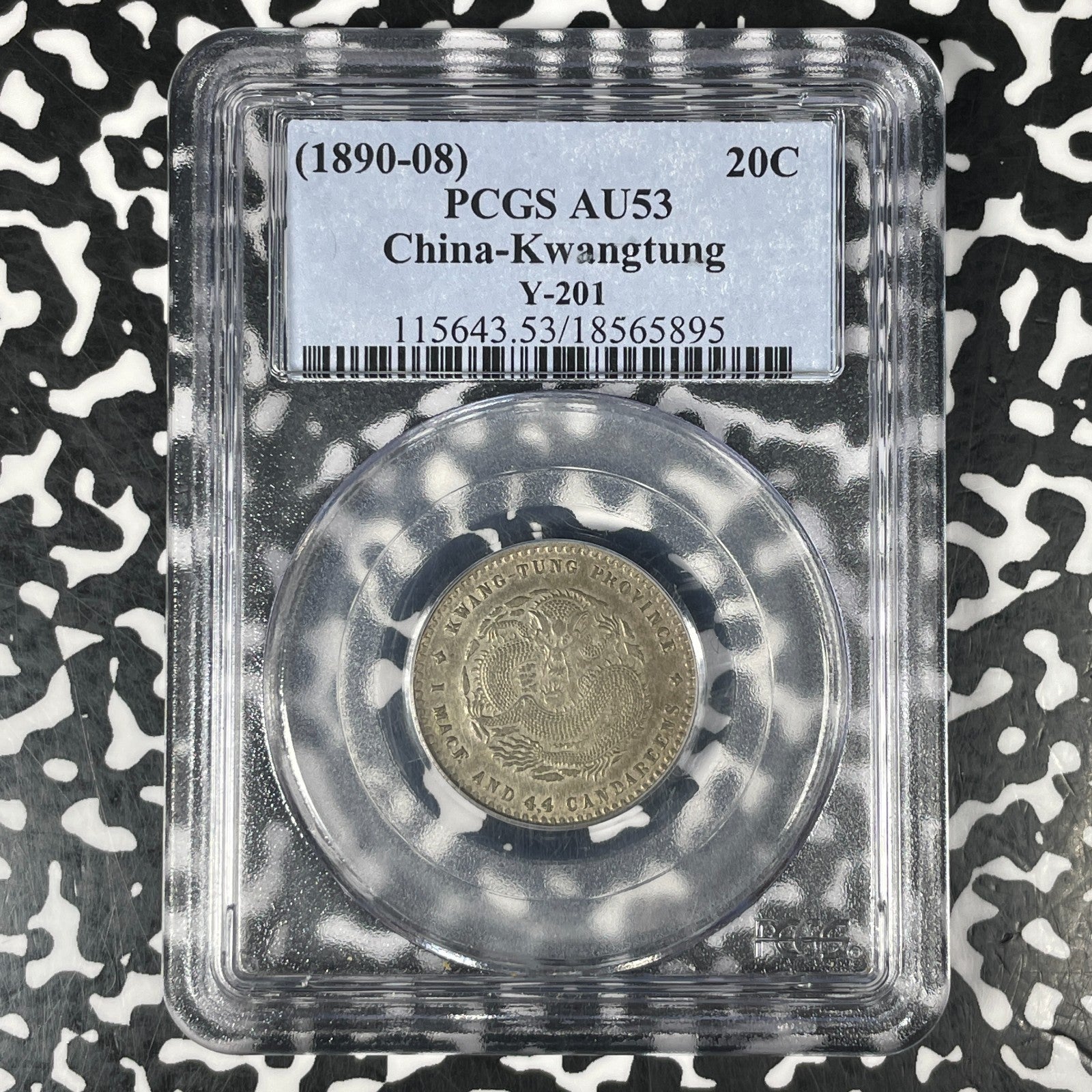 (1890-1908) China Kwangtung 20 Cents PCGS AU53 Lot#G1303 Silver! Y-201