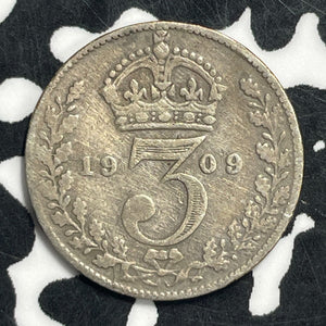 1909 Great Britain 3 Pence Threepence Lot#C0559 Silver!