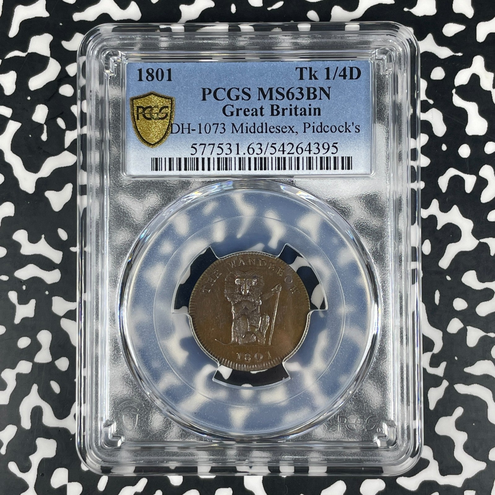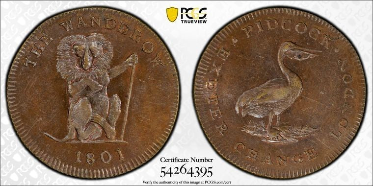 1801 G.B. Pidcocks Wanderoo/Pelican Farthing Token PCGS MS63BN Lot#G1753 DH-1073
