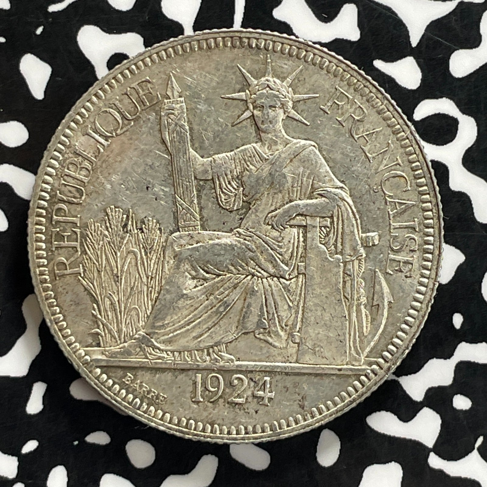 1924-A French Indo-China 1 Piastre Lot#JM0217 Large Silver! Nice!