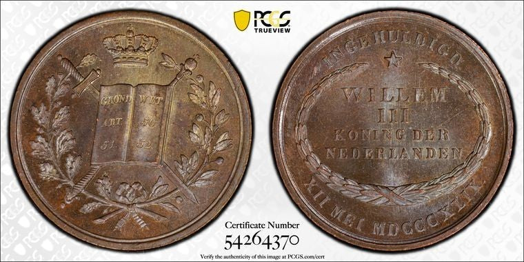 1849 Netherlands Willem III Inauguration Medal PCGS MS65BN Lot#G1737 Gem BU!