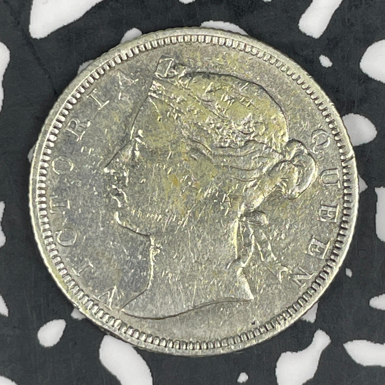 1877 Straits Settlements 20 Cents Lot#JM0784 Silver! Key Date! Cleaned