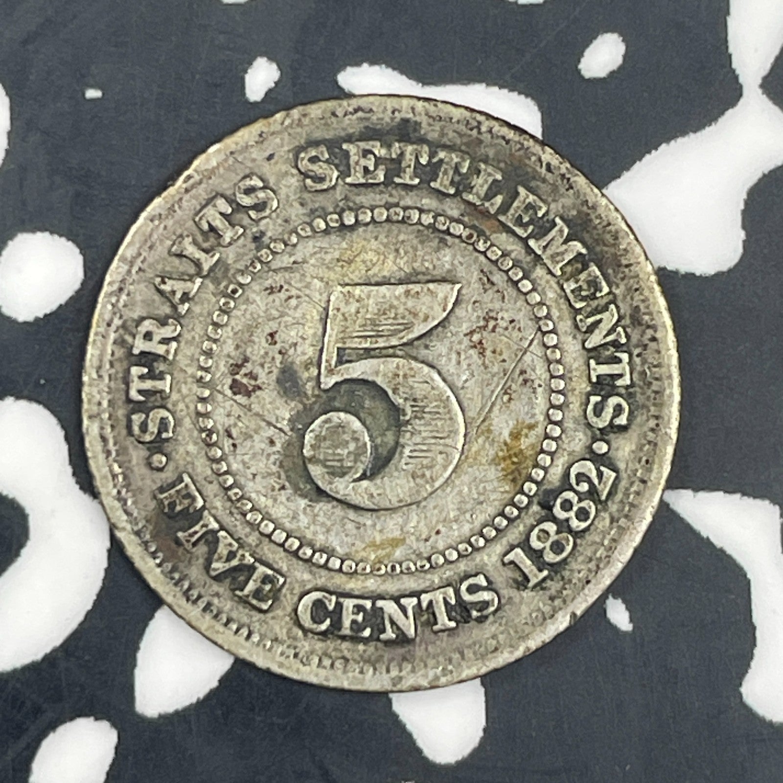 1882-H Straits Settlements 5 Cents Lot#C9176 Silver!