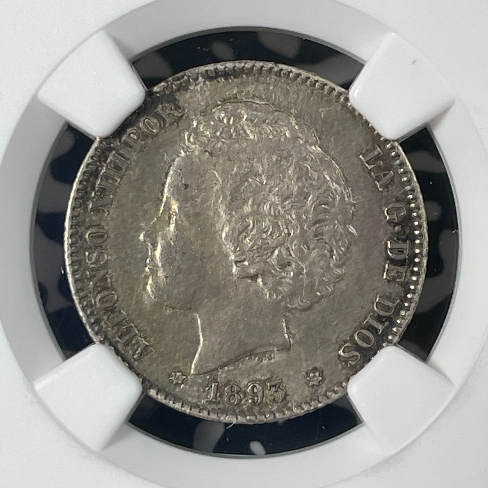 1893 (93) Spain 1 Peseta NGC Cleaned-AU Details Lot#G1551 Silver!