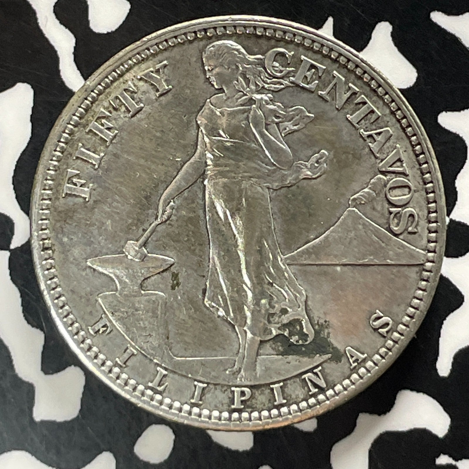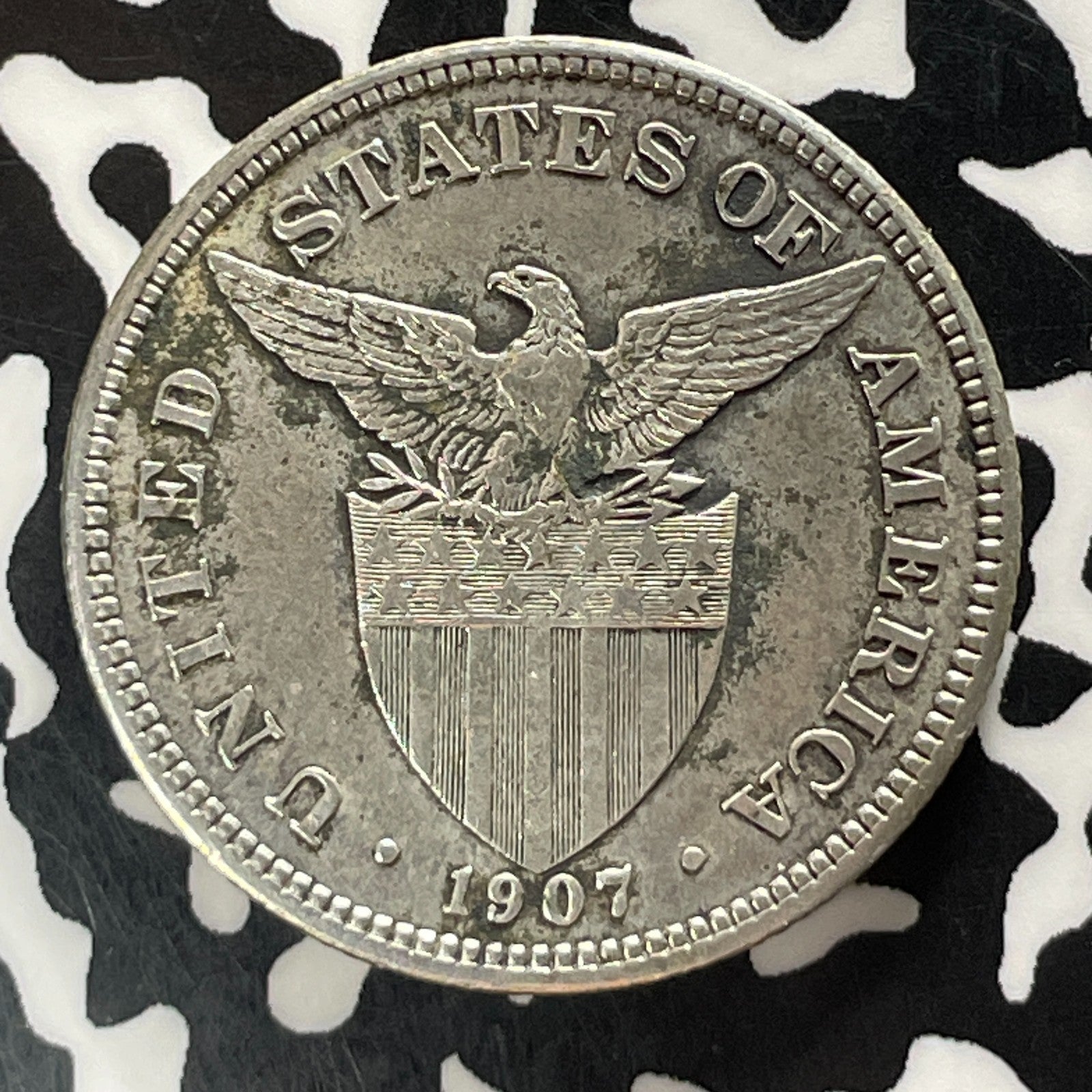 1907 U.S. Philippines 50 Centavos Lot#JM0406 Silver! Beautiful Detail, Cleaned