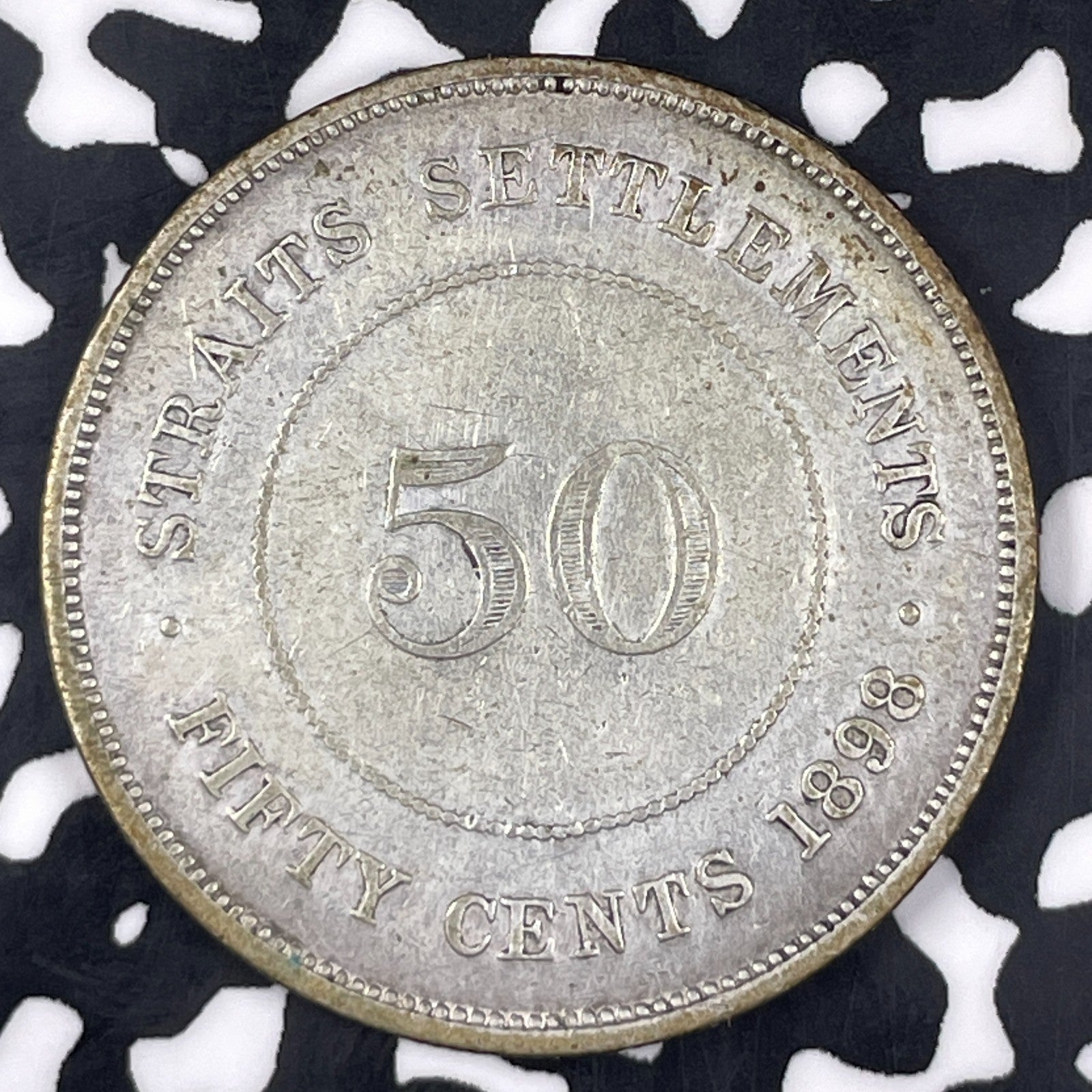 1898 Straits Settlements 50 Cents Lot#JM0931 Silver! Old Cleaning