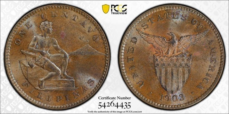 1903 U.S. Philippines 1 Centavo PCGS MS63BN Lot#G1742 Choice UNC!