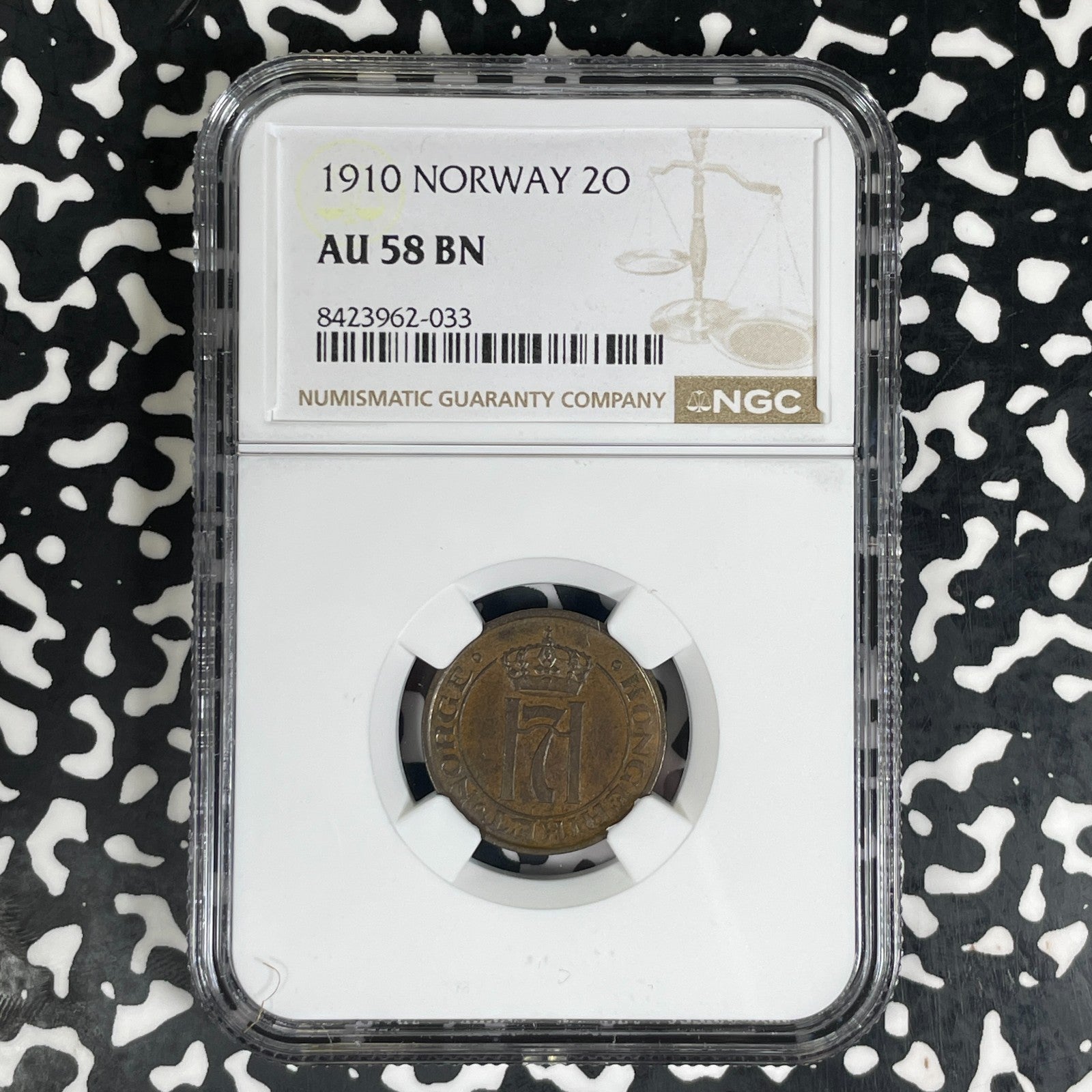 1910 Norway 2 Ore NGC AU58BN Lot#G1642 Key Date!