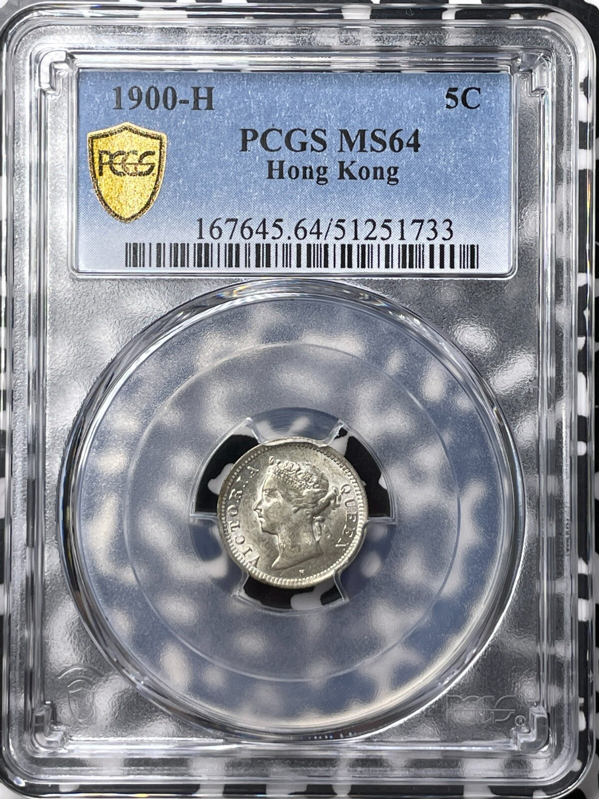 1900-H Hong Kong 5 Cents PCGS MS64 Lot#G9249 Silver! Choice UNC!