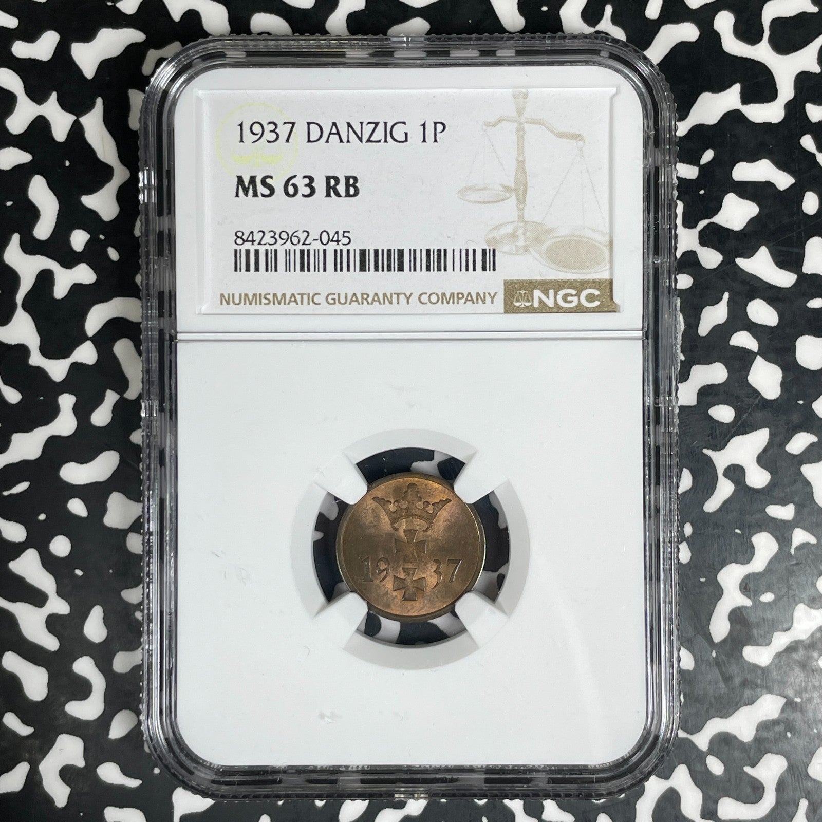 1937 Danzig 1 Pfennig NGC MS63RB Lot#G1670 Choice UNC!