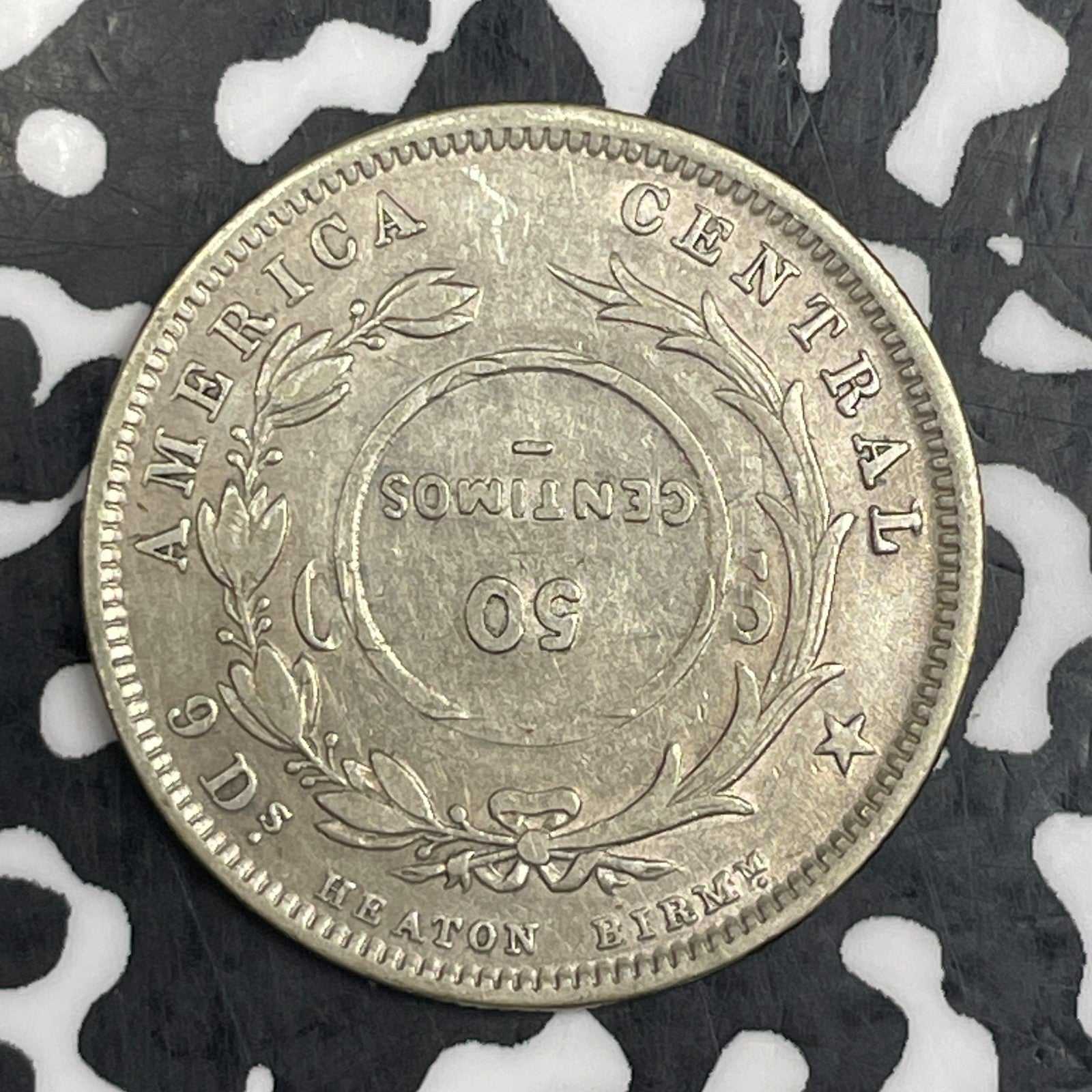 (1923) Costa Rica 50 Centimos C/S on 1893 25 Centimos Lot#C8899 Silver! Nice!