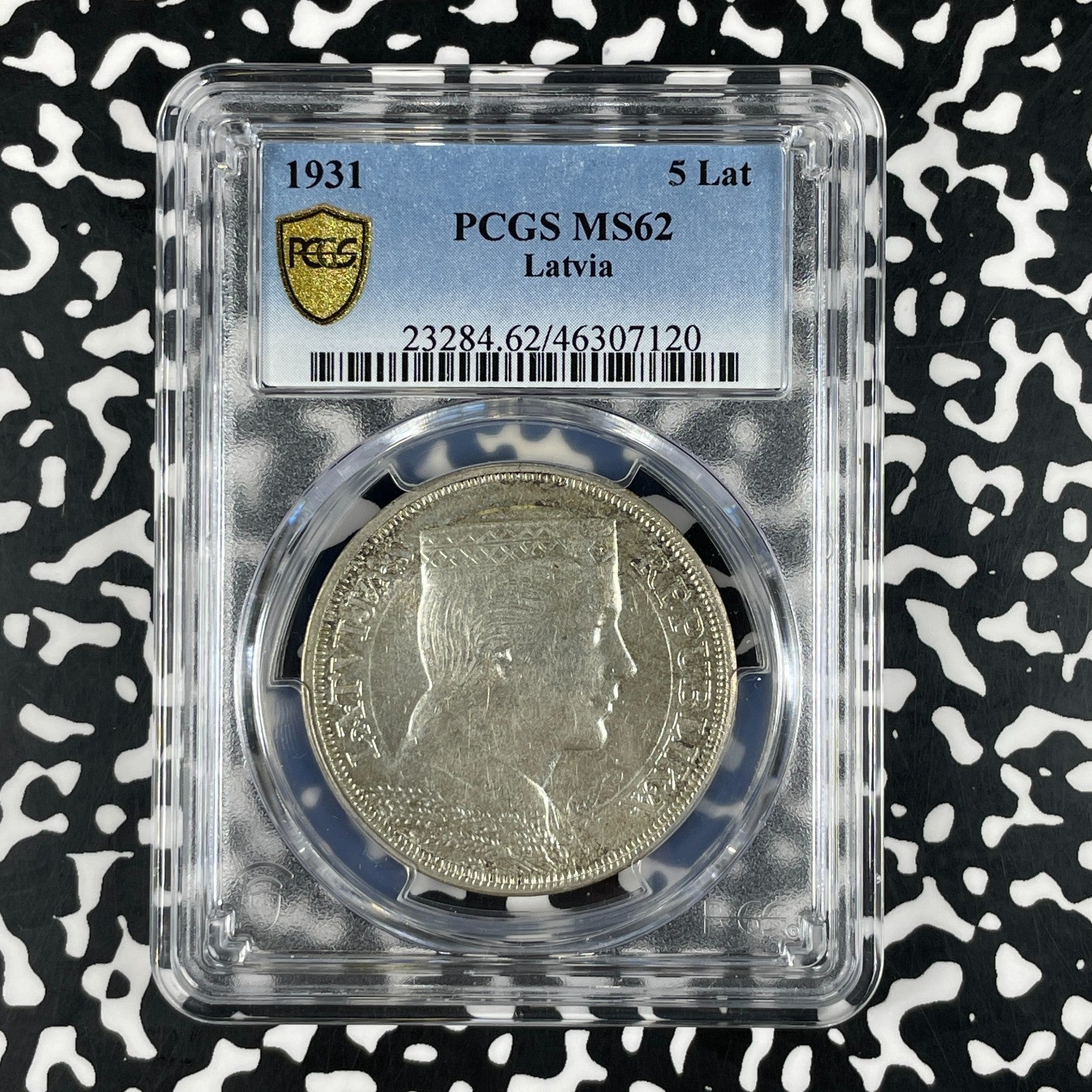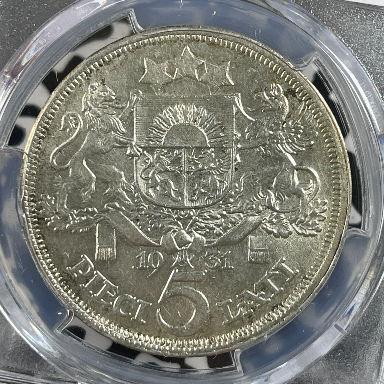 1931 Latvia 5 Lati PCGS MS62 Lot#G2137 Silver! Nice UNC!