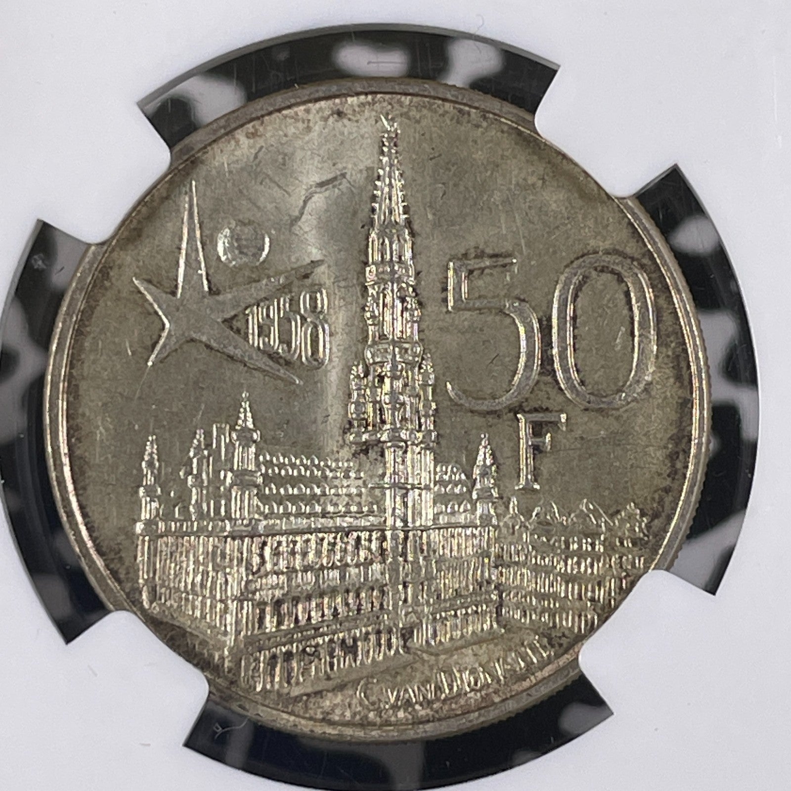 1958 Belgium Worlds Fair 50 Francs NGC MS63 Lot#G2134 Silver! KM#150.1 French