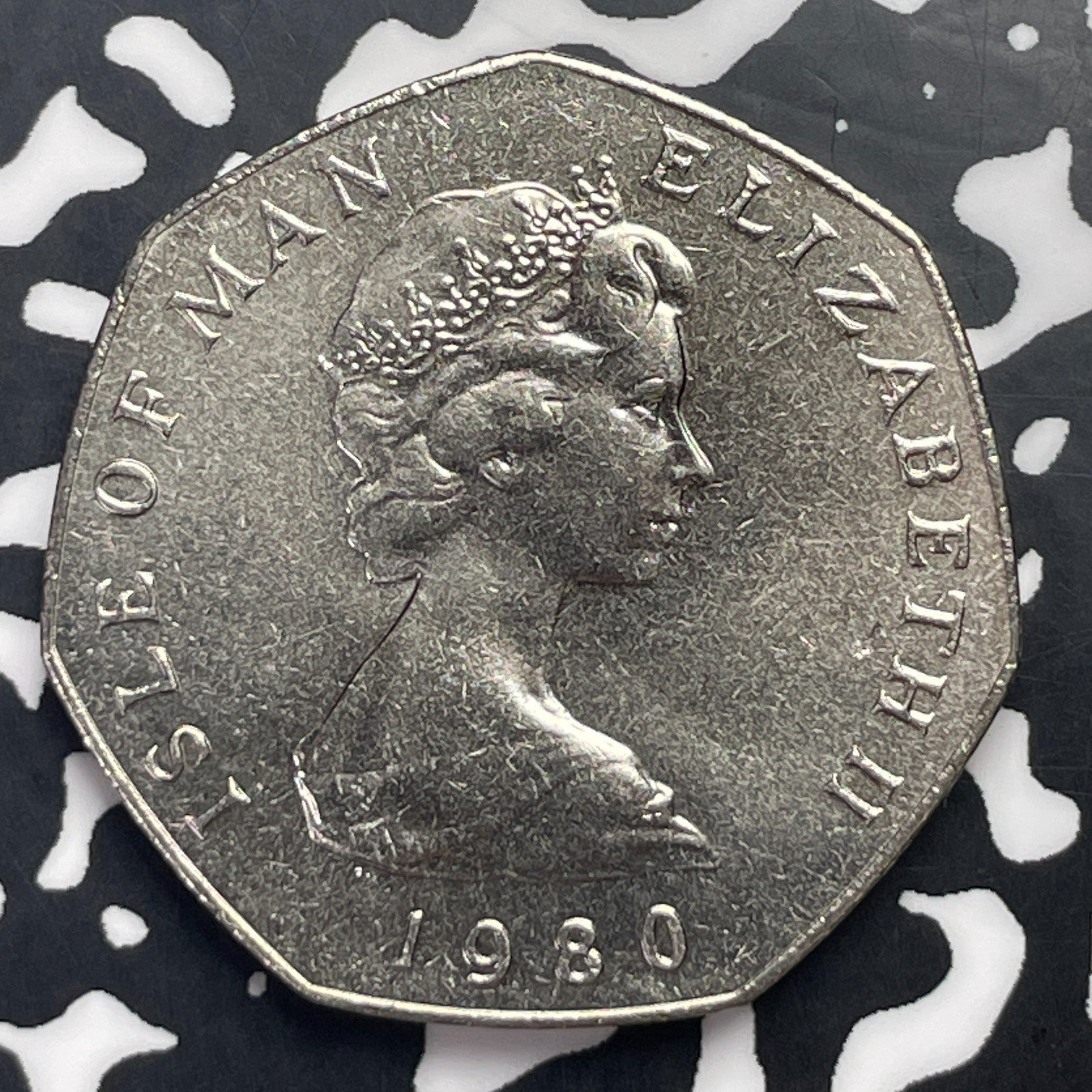 1980 Isle of Man 50 Pence Lot#C0942 High Grade! Beautiful! Christmas