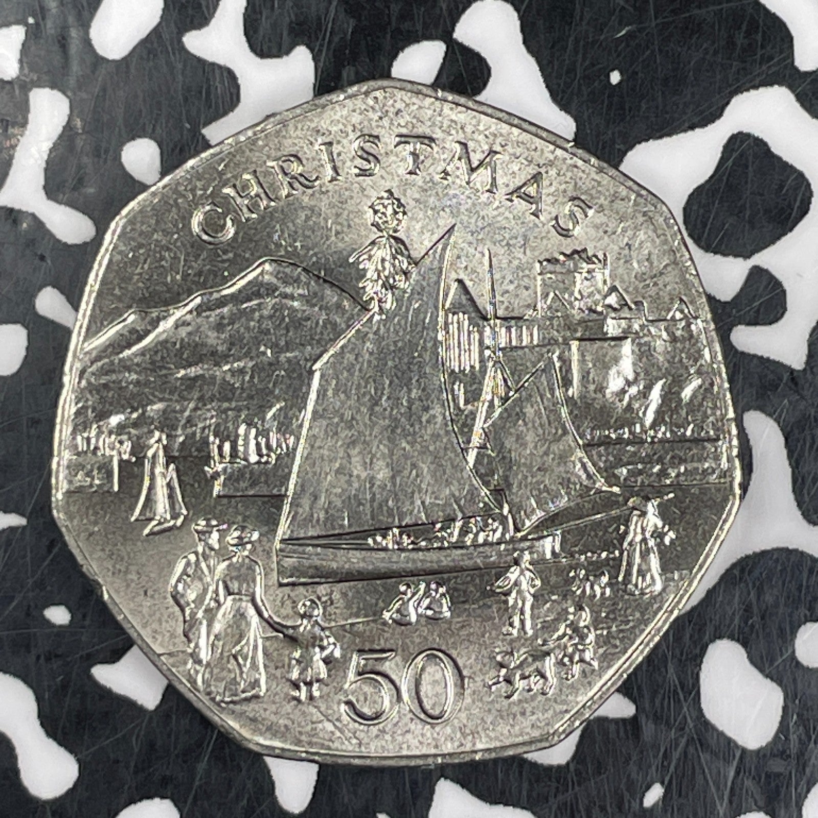 1981 Isle of Man 50 Pence Lot#C9023 High Grade! Beautiful! Christmas
