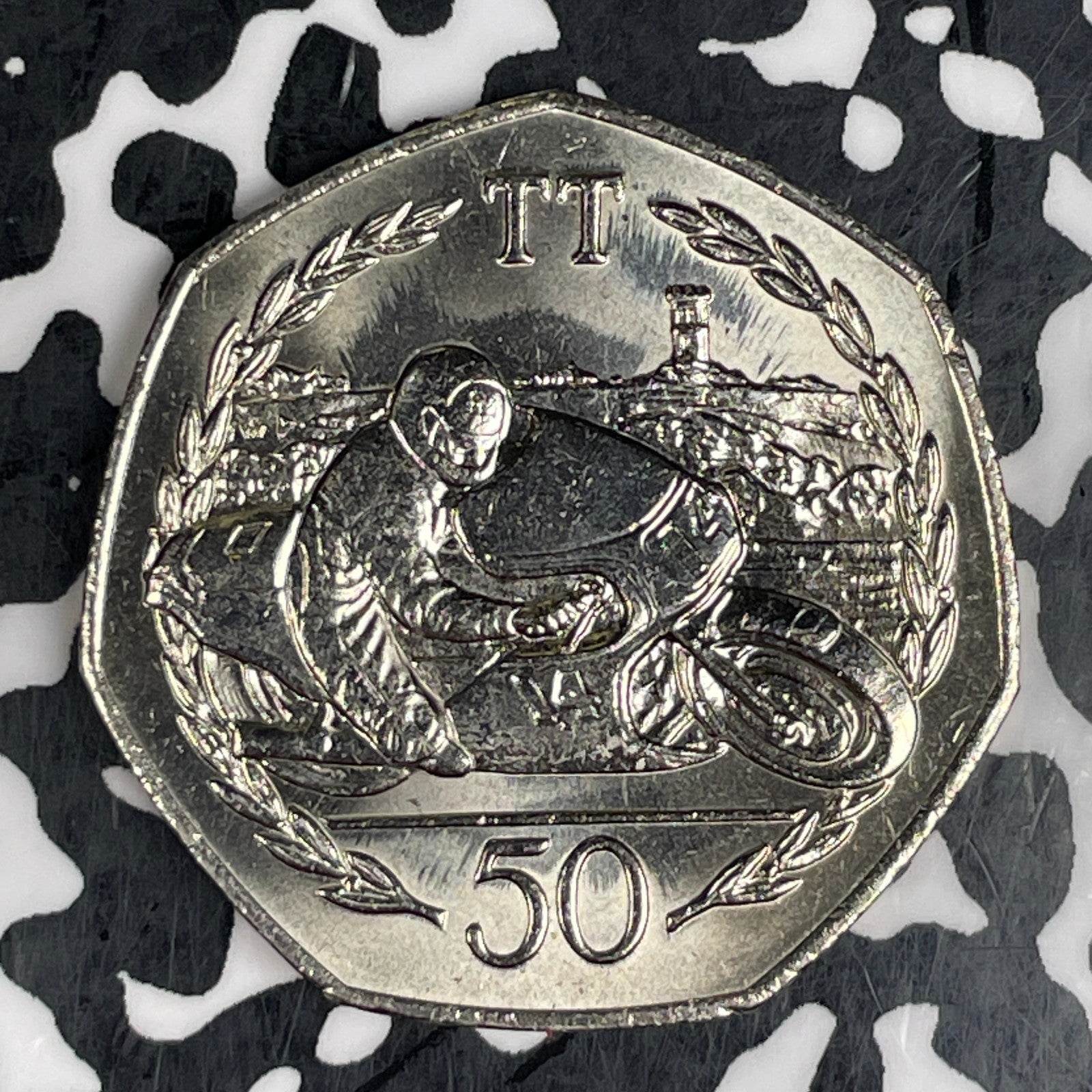 1983 Isle of Man 50 Pence Lot#C8947 High Grade! Beautiful! Motorcycle