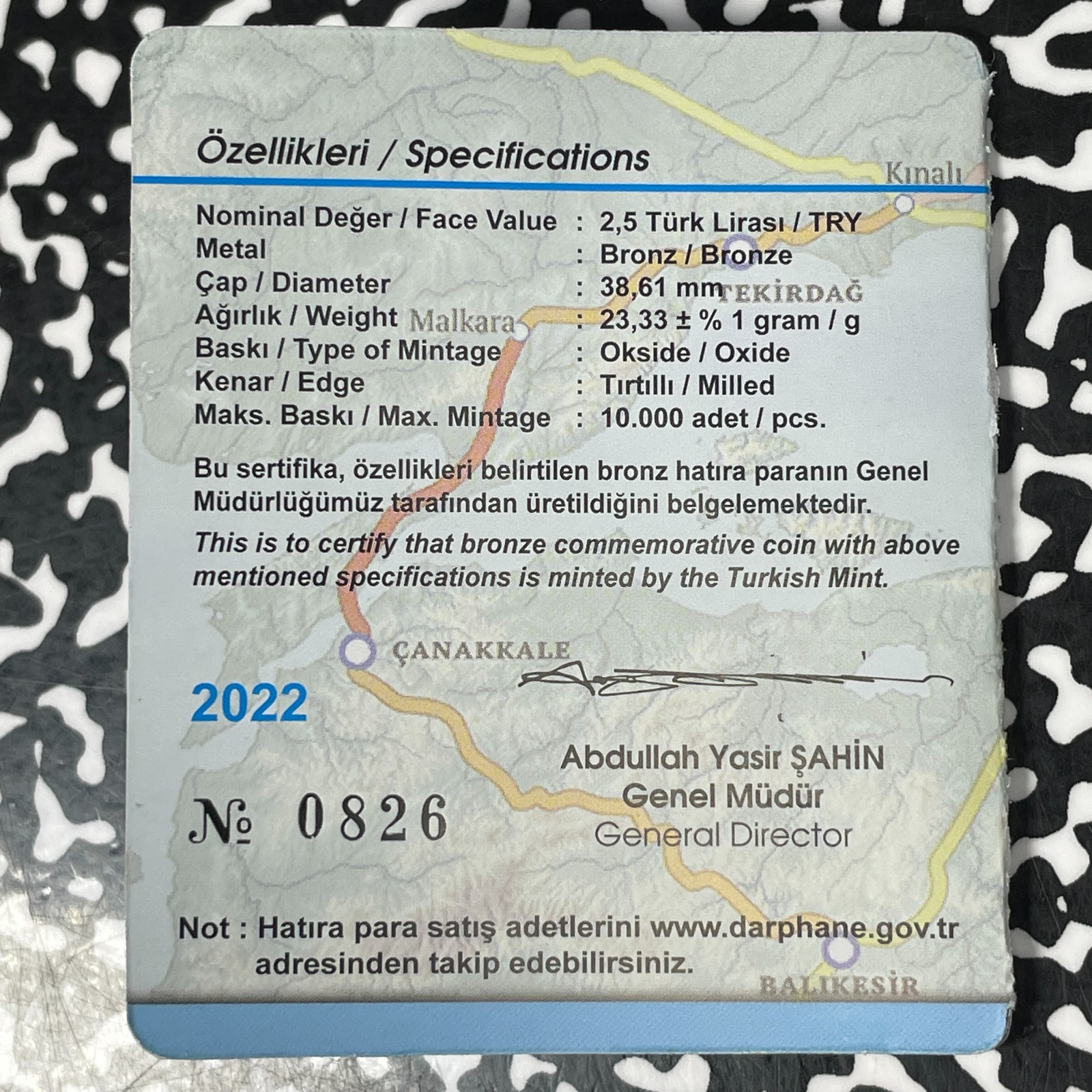 2022 Turkey Canakkale Bridge 2 1/2 Lira Lot#OV1807 With C.O.A.