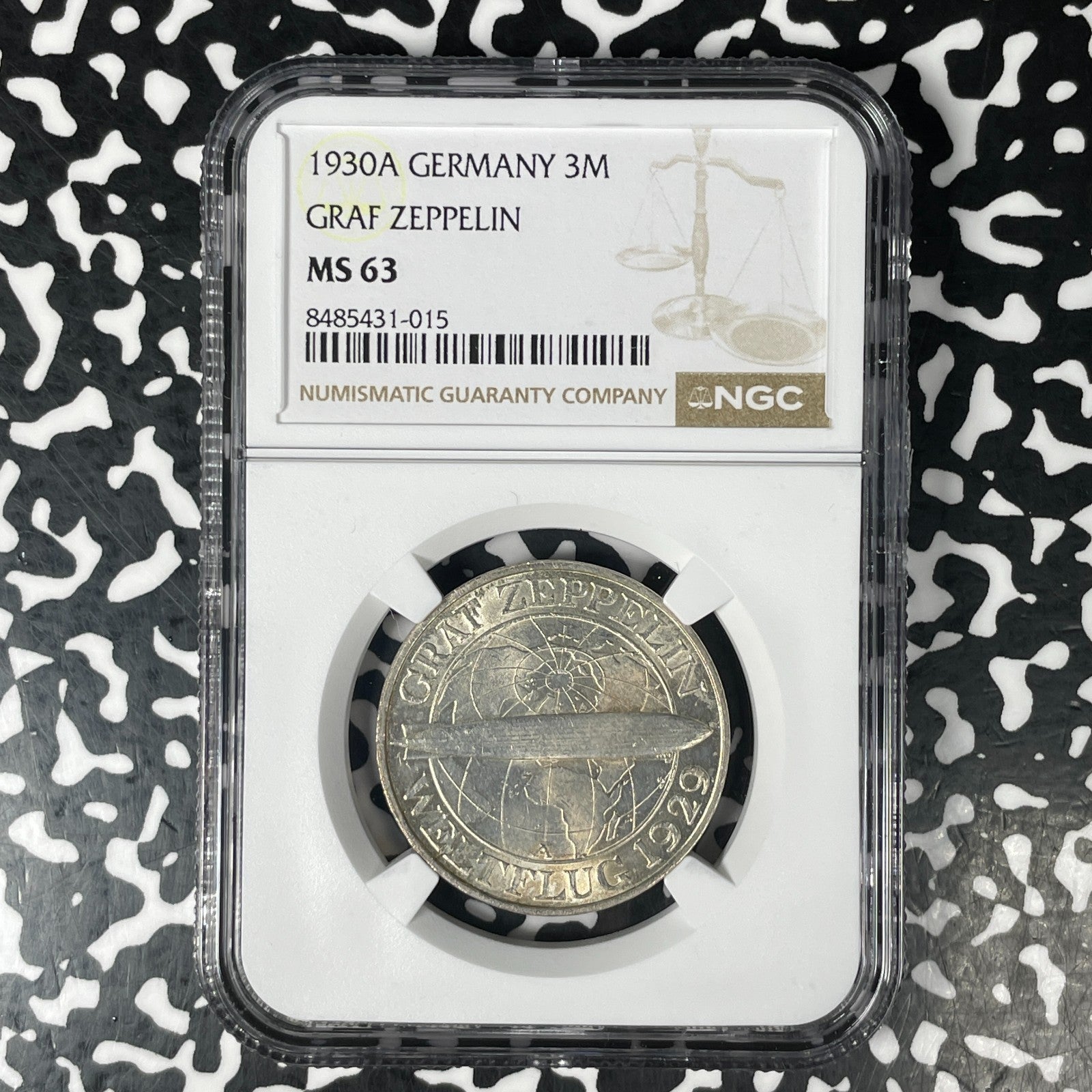 1930-A Germany Graf Zeppelin 3 Mark NGC MS63 Lot#G1421 Silver! Choice UNC!